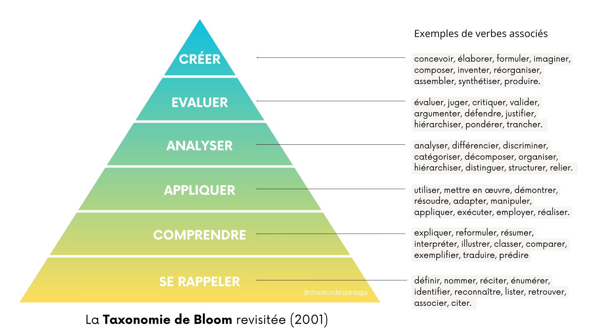 mémoriser → comprendre → appliquer → analyser → évaluer → créer.
